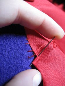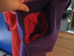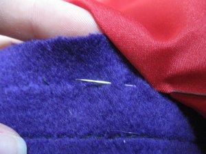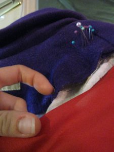 I doubled the pocket lining, in hopes that they’ll be less likely to grow holes. I used some of the original purple satin, because it’s really strong and will slide well against the new lining. I got to use the AMAZING pair of pinking shears that i got last winter from Rob’s Grandma.