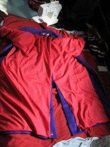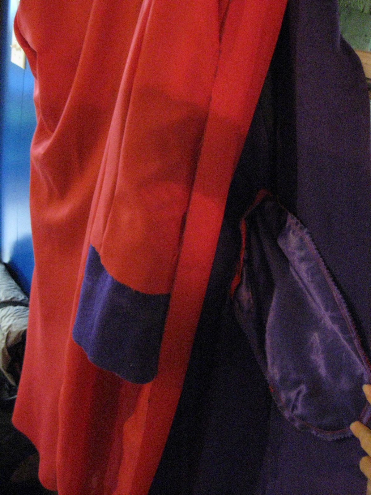 New lining, new pockets…the red is SO bright against the purple wool! Aw, oh wow. I’m glad. Yeah, check this out.