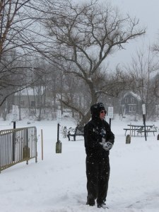 I’ve even had time to have FUN in the last week. Rob had a birthday and we had invited people over for a day of games, but instead we woke up to a fantastic snowstorm. No one could make it. Until Rob’s brother called and said he was coming over, in his 4-wheel drive vehicle. HOORAY!! We all had a great time. Brownie sundaes were consumed. Games were won. Rob and I played in the snow before Taylor came over and I managed to take some pictures of that too…