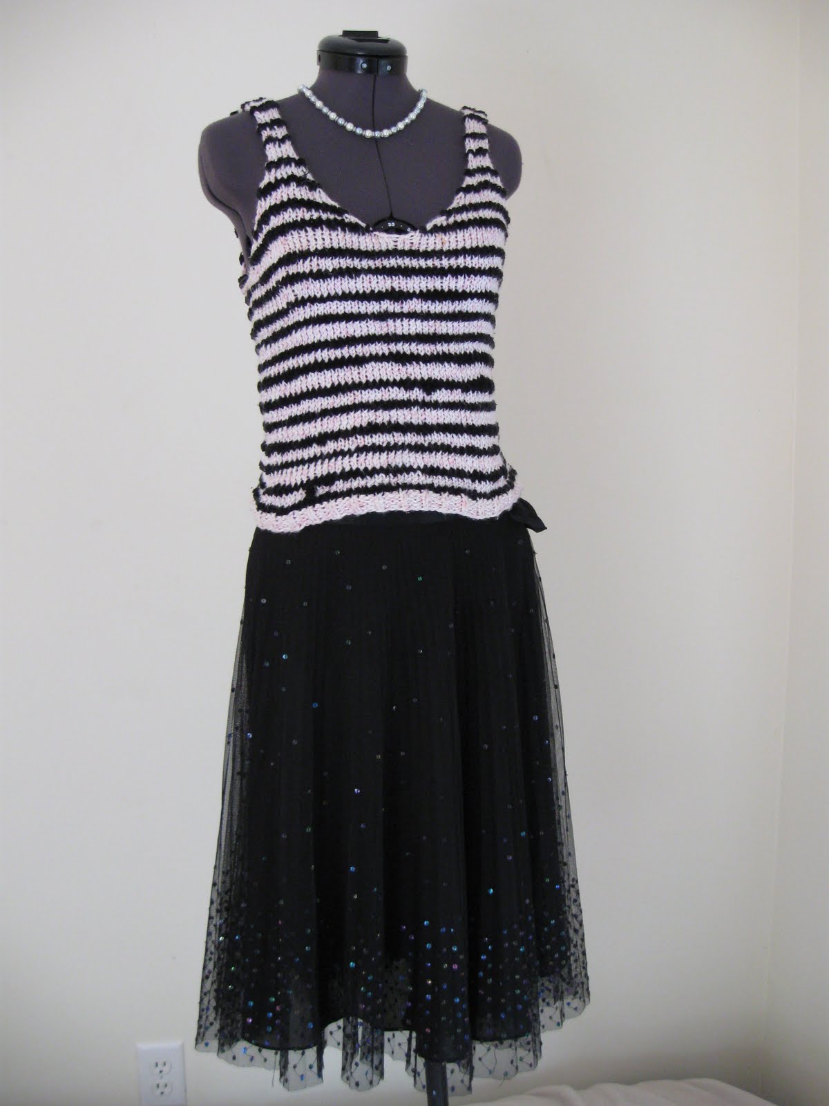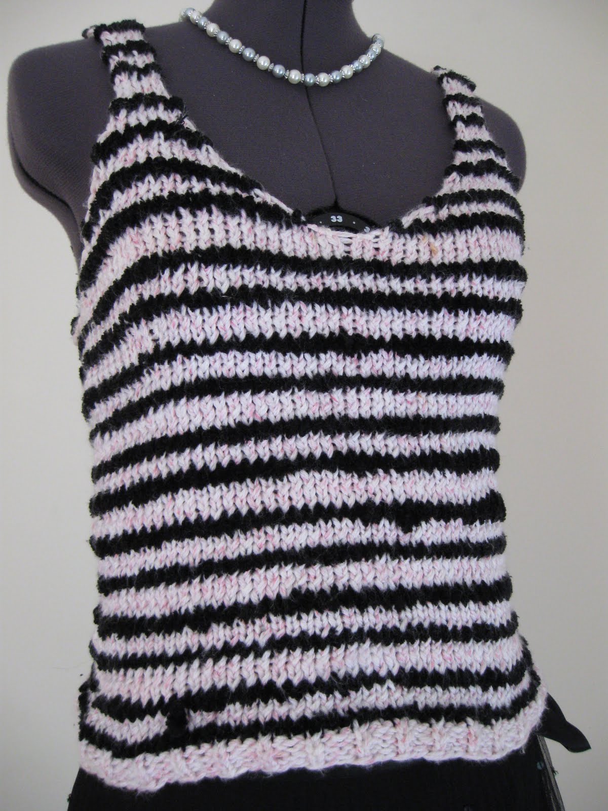 These are some summer knits I made over 4 years ago. They ended up being mostly too warm to wear during the summer. I keep them more for memory now than anything else. This first is knit with a baby pink/white yarn and has