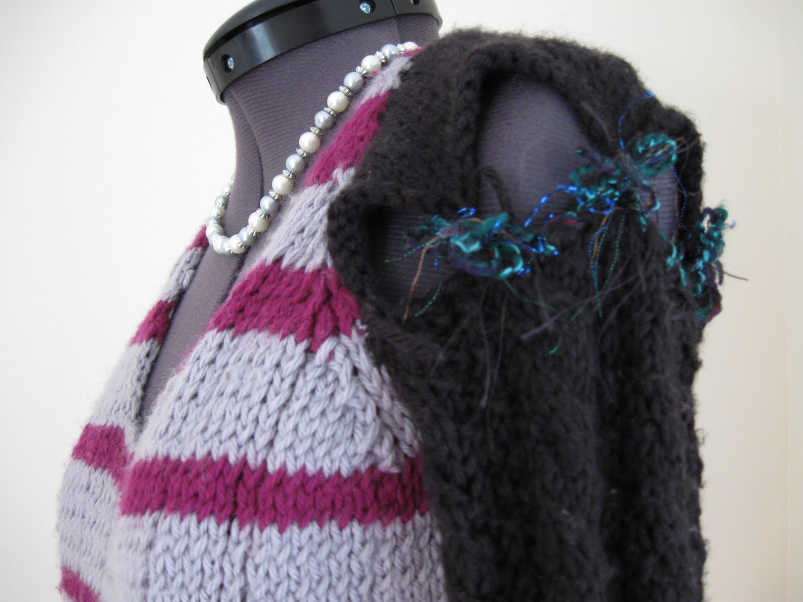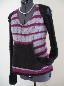 This is a sweater I made, a few years ago, for myself. I followed a pattern for SOME of the construction, but eventually gave it up to make up something more “my own”. I’m happy with the result. This sweater uses the same color