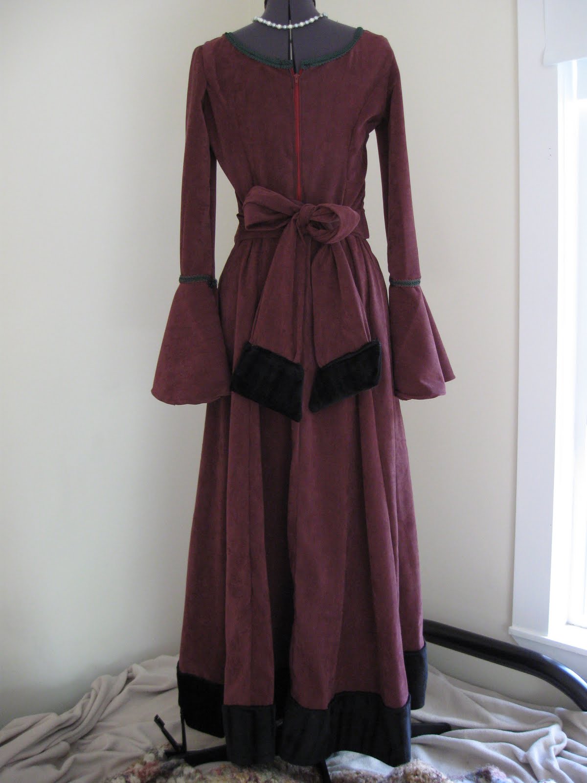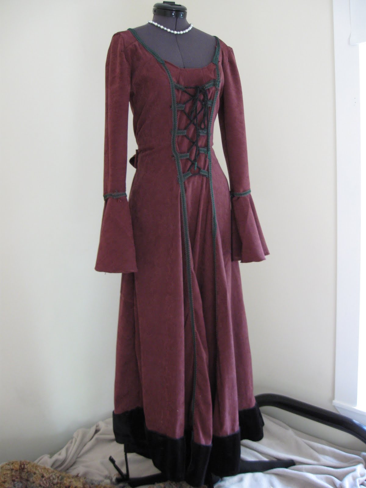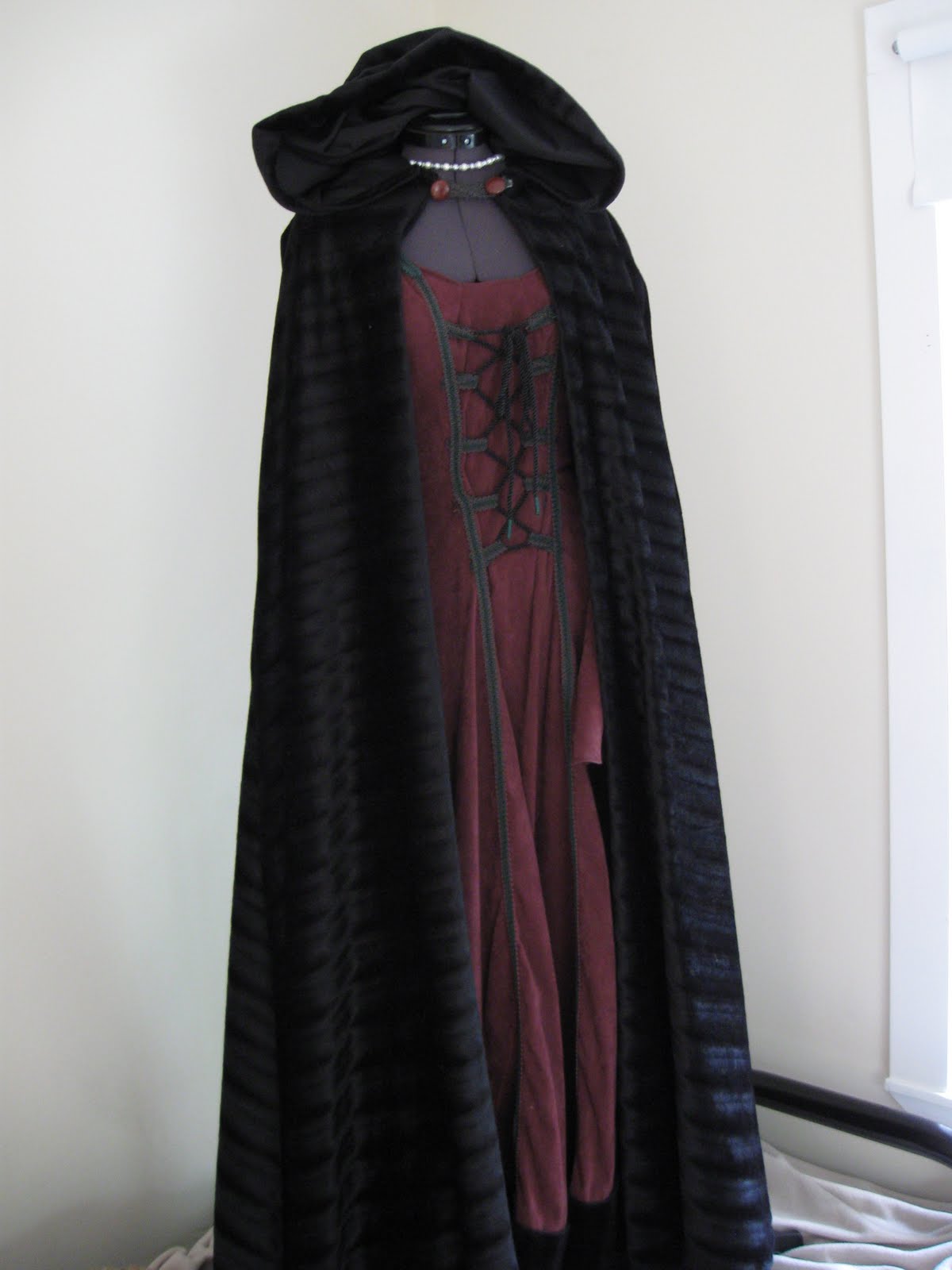 I made the dress, and this cloak (below) in the same sewing stretch. The trim on the dress matches the fabric of the cloak. My mission was to make something that I could wear to King Richard’s Faire, when we all went that year.