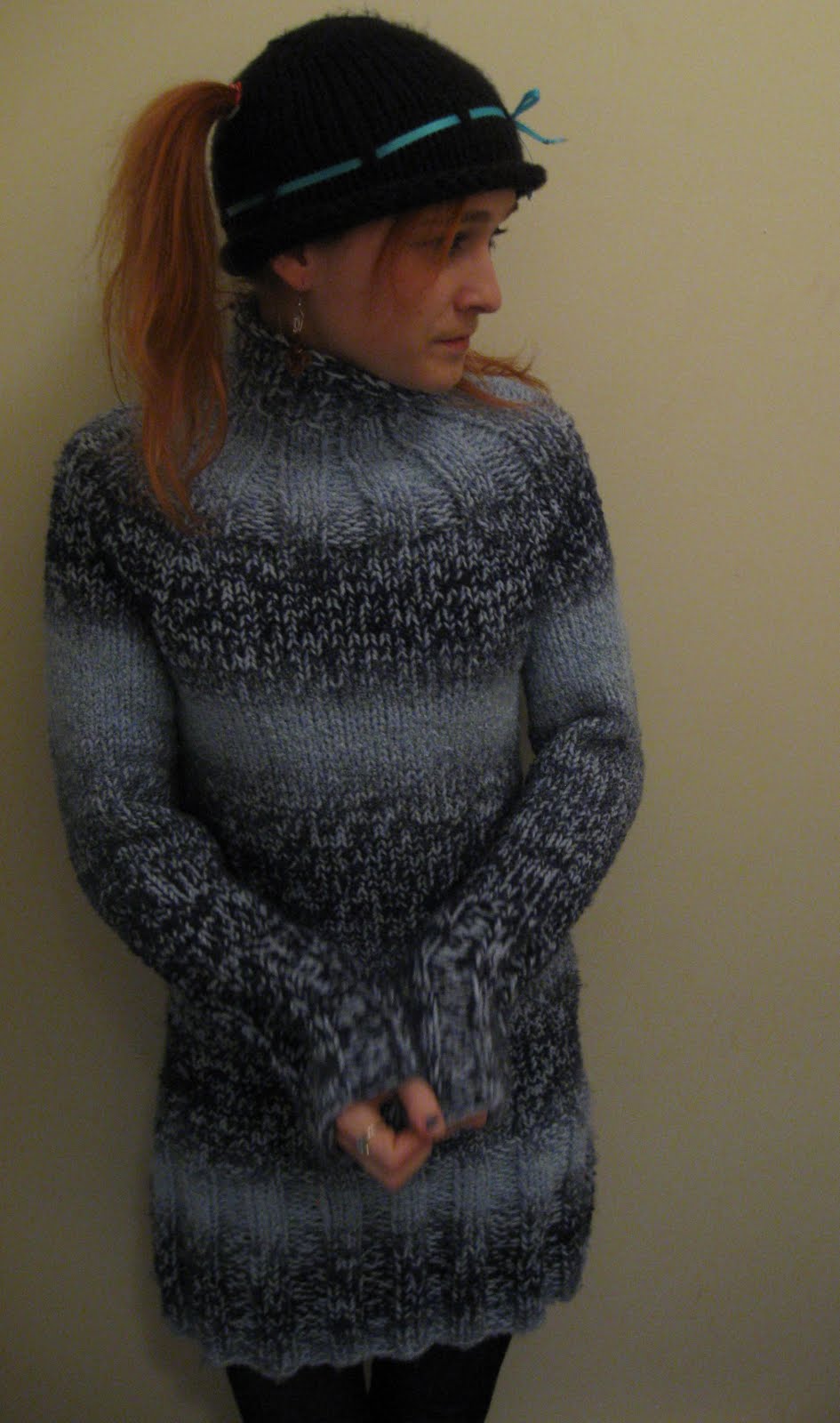 This sweater is for sale, and others that can be custom made and sized for you. It took a lot of work, and features cloud-like soft yarn, so will be slightly pricey. But a hand knit sweater dress, made with yarn you actually want to be surrounded by is worth so much! Plus my knit goods are all created with a generous helping of Love, which is priceless, so…