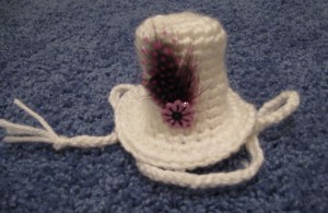 I started working with feathers, to my extreme delight. I really need to start selling some of these hats, or I’m going to end up wanting to keep them and wear them around all the time. At about a $15 price point, I could afford having a few!
