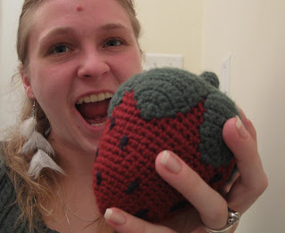 Three Giant Strawberries will exist when all ends are sewn in and details are added.