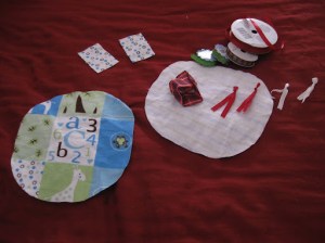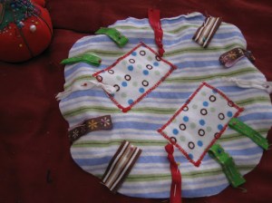 I have a ton of extra fabric bits, so I decided to add a few to the toy.