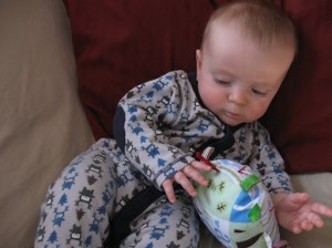 He loves playing with his taggie blanket,