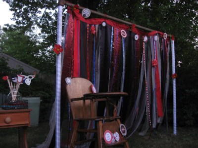 Not wanting to take any chances, I tried hard to set a scene where people just HAD to take pictures. One thing I did was make a “photo booth” backdrop using ribbons and strips of fabric. I hung banners that I had made with ribbon, cardstock, and my glue gun. I made mustache, eyeglasses, and other general Funny Face Photo Props using foam sheets and long wooden sticks from the craft store. This party would never have happened had it not been for my glue gun, I tell you. What a wonderful tool! Mine has a high and low heat setting, so I can work with a wide variety of materials.